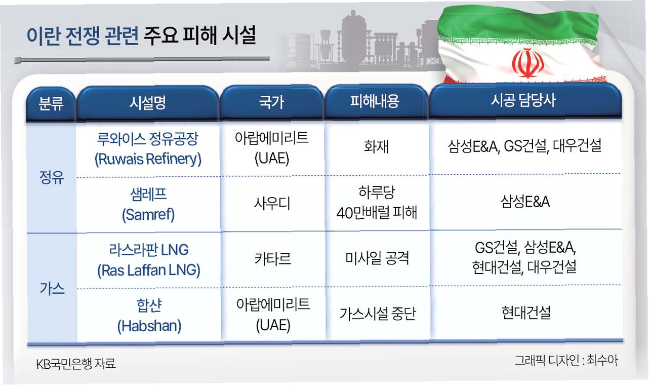 기존 반도체 중심의 포트폴리오에서 벗어나 새로운 투자 대안을 모색해야 할 시점입니다. 전쟁으로 훼손된 시설 복구 수요와 에너지 공급망 재편이라는 구조적 변화는 '재건'과 '에너지 인프라' 분야에 대한 관심을 높이고 있습니다. 중동 지역 에너지 시설의 상당 부분이 심각한 타격을 입으면서 향후 상당한 규모의 재건 수요가 발생할 것으로 예상됩니다. 이는 과거 중동 프로젝트 경험이 풍부한 국내 건설사들에게 유리한 환경을 제공할 수 있습니다.