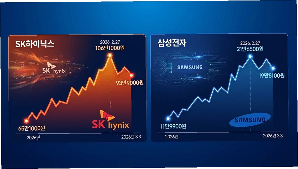 최근 중동발 지정학적 리스크로 시장 변동성이 커진 가운데, 삼성전자와 SK하이닉스의 목표주가가 증권가에서 연이어 상향 조정되고 있습니다. 이는 메모리 반도체 가격 상승폭이 예상치를 웃돌고 있으며, 양사의 실적 정점이 아직 도래하지 않았다는 분석에 기반합니다. 지난날 코스피 시가총액 1·2위인 삼성전자와 SK하이닉스의 주가는 각각 13.4%, 10.7% 급등하며 시장의 주목을 받았습니다. 이러한 상승세에 힘입어 코스피지수 역시 큰 폭으로 올랐습니다. 현재 주가는 최고점 대비 낮은 수준이지만, 증권가에서는 향후 이를 뛰어넘을 것으로 전망하고 있습니다.