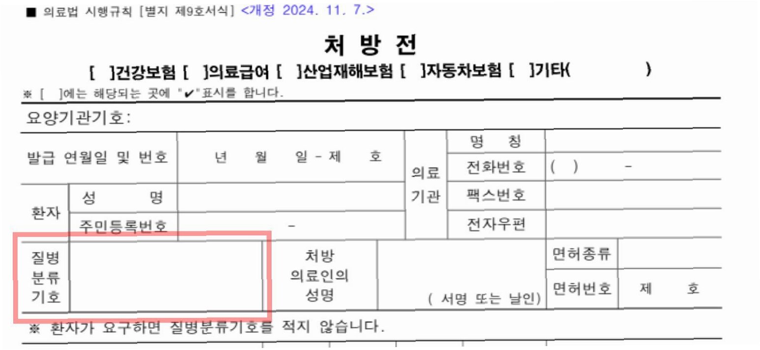 A.의료법상 의사·치과의사는 처방전에 질병코드를 기재해야 합니다. 질병코드가 누락된 경우 병원에 재발급을 요청하거나, 국민신문고 등에 민원을 제기할 수 있습니다.
