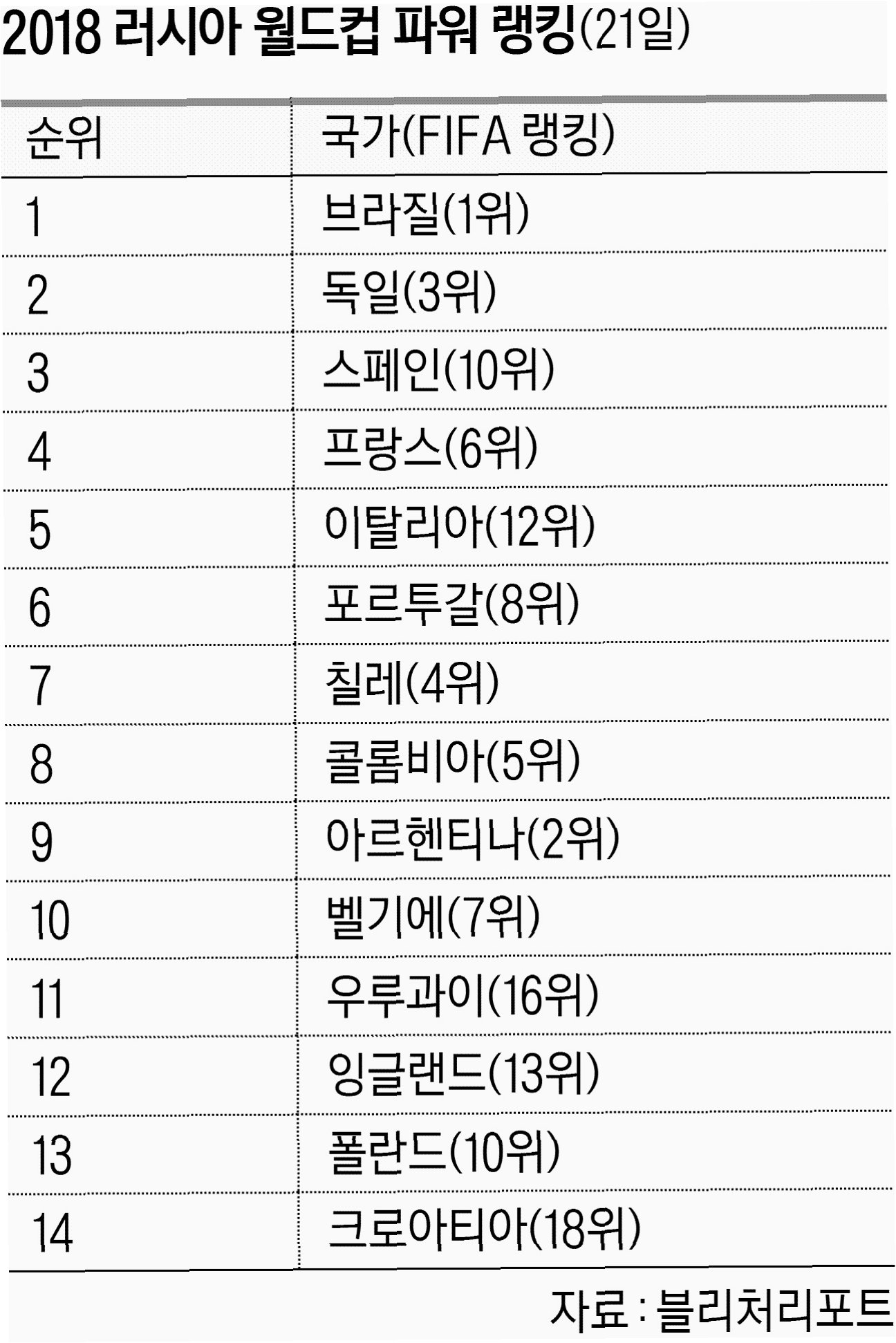월드컵 3개월 전, 각국 파워랭킹 공개